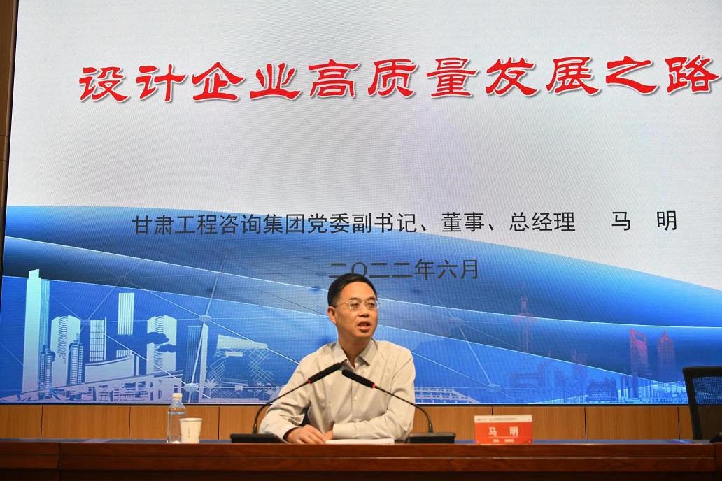 6月9日,在甘肅省建筑設計研究院有限公司喜迎建院70周年華誕之際,集團公司黨委副書記、總經理馬明受邀以《設計企業高質量發展之路》為題作專題講座。集團公司經理層成員、各部門主要負責人及兄弟單位主要領導,建筑設計院領導班子成員、全體中層干部聆聽講座。