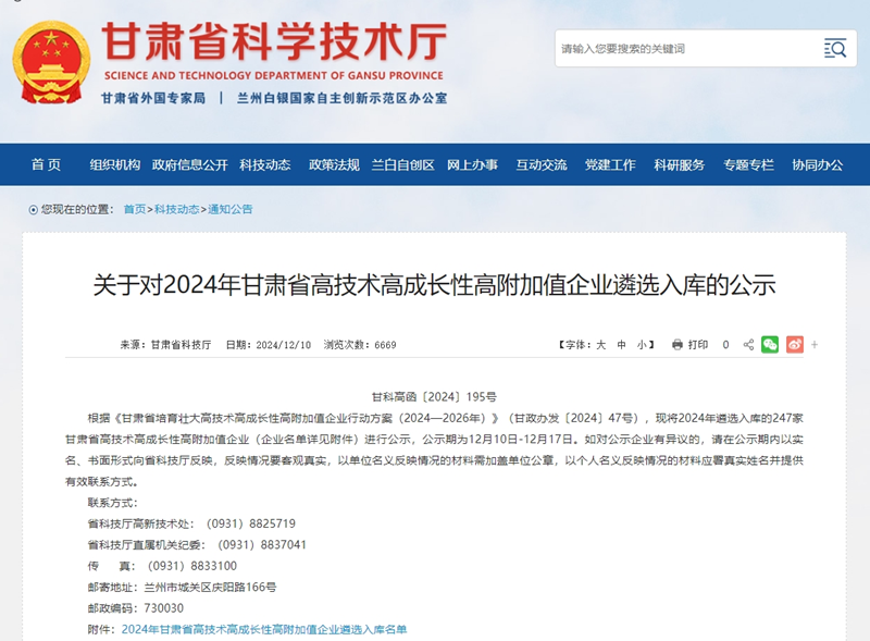 甘肅工程咨詢集團4戶企業入選2024年甘肅省高技術高成長性高附加值企業名單