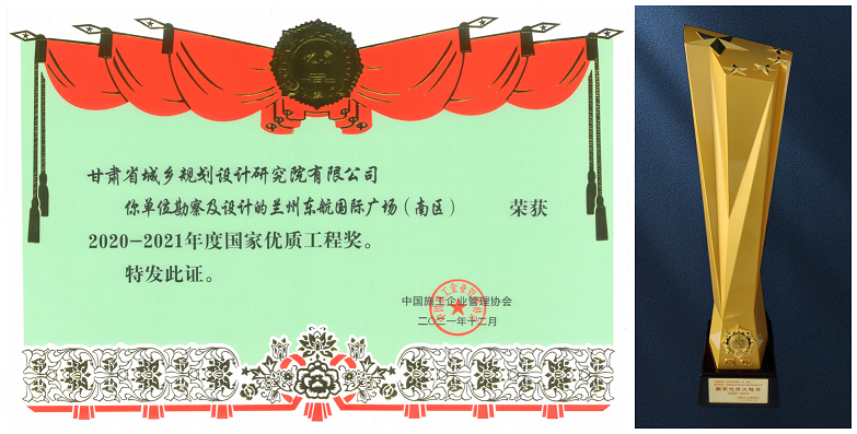喜報!規劃設計院負責勘察、設計的“蘭州東航國際廣場(南區)項目”榮獲“2020—2021 年度國家優質工程獎”
