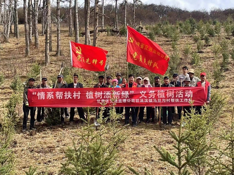 甘肅省交通工程建設監理有限公司駐村幫扶工作隊開展“情系幫扶村 植樹添新綠”義務植樹活動