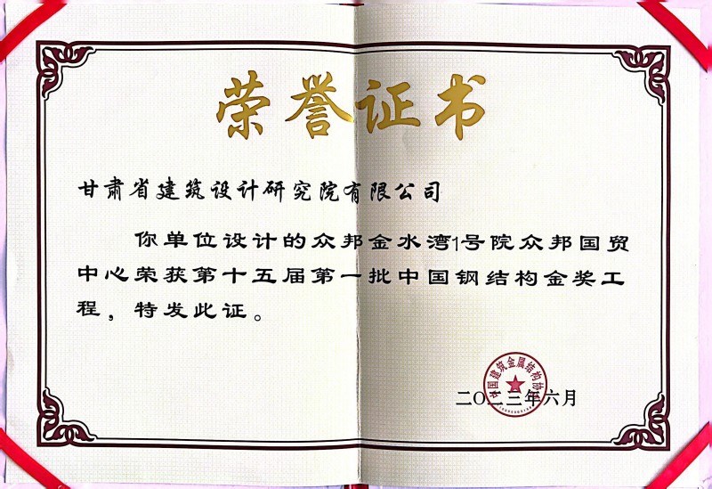 近日,從中國建筑金屬結(jié)構(gòu)協(xié)會(huì)傳來喜訊,由省建筑設(shè)計(jì)院總建筑師、甘肅省工程勘察設(shè)計(jì)大師馮志濤領(lǐng)銜團(tuán)隊(duì)設(shè)計(jì)的“眾邦國貿(mào)中心”榮獲“第十五屆第一批中國鋼結(jié)構(gòu)金獎(jiǎng)工程”榮譽(yù)稱號(hào)。