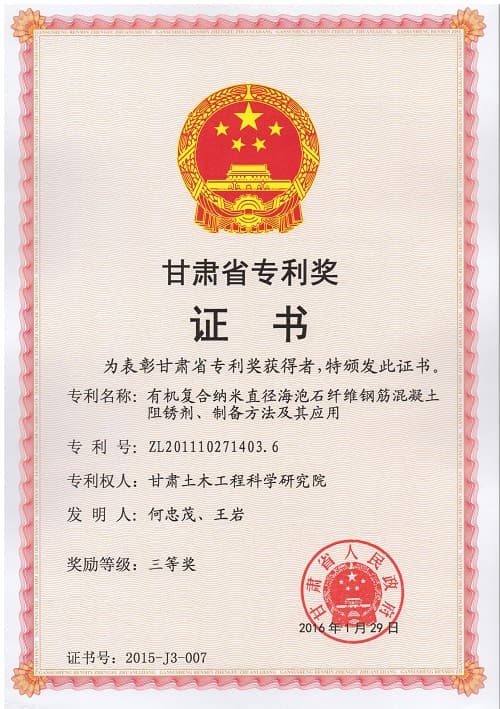 2015甘肅省專利獎三等獎