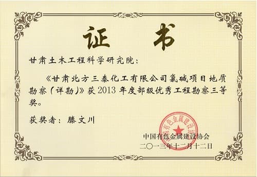 優秀工程勘察三等獎